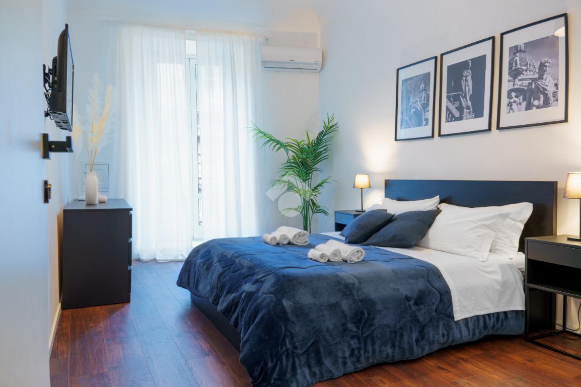 spaziosa camera da letto con balcone su Corso Vittorio Emanuele, cabina armadio e grande bagno finestrato.